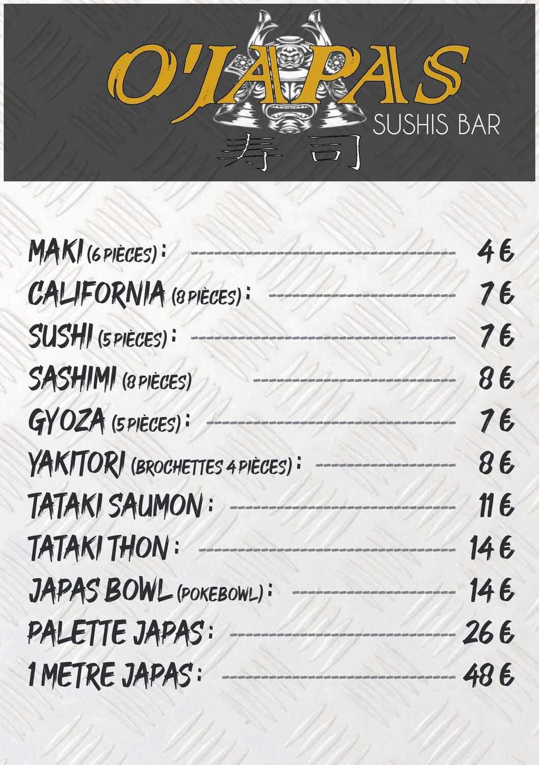 Chez O’JAPAS, nous sommes fiers de vous offrir des plats de qualité préparés avec des ingrédients frais et de saison, le tout dans un cadre chaleureux et accueillant. Nous avons hâte de vous faire découvrir notre cuisine et de vous offrir une expérience culinaire inoubliable.